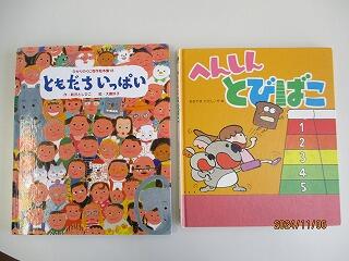 「ともだちいっぱい」は、「ともだちのともだちはともだち!」園長先生も、ありも、歌も、空も、友だちの輪が広がる心温まる内容でした。「へんしん とびばこ」は、色々な物が、とび箱を飛ぶ前と飛んだ後に変身する姿が面白く、子ども達も笑顔で聞いていました。