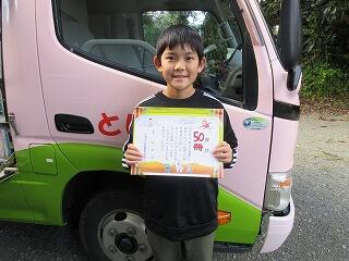 本校は「旅する読書」に参加しており、本を借りるとスタンプがもらえます。今日は、結々さんが50冊達成し表彰されました。読書の秋です。これからもたくさん本を読みましょうね。