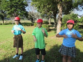 3校時、「先生⤴」と子ども達の元気な声が聞こえたので、体育館の入口を見ると、みんながニコニコしながらスローガンを持って「出来ました!」と披露してくれました。思わず、カメラを持って走り写真を撮りました。運動会当日、天気に恵まれ頑張って描いたスローガンが運動場に飾れるといいですね。