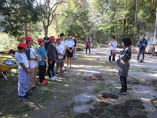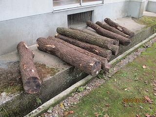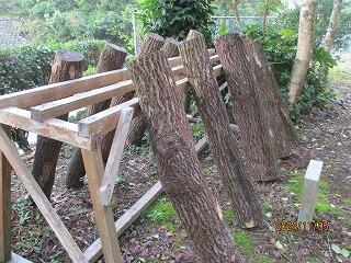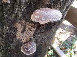夏休み、職員で「椎茸を栽培し秋に収穫できないか?」と話題になりました。地域学校協働活動推進員の長友さんに相談すると、すぐに椎茸栽培をされている地域の方に連絡を取ってくださり、植菌作業が終わった原木をいくつかご厚意で譲っていただけることになり、後日職員と長友さんと原木を取りに行きました。いただいた原木は、しばらく寝かせ、10月終わりに起こし並べていきました。昨日、見に行くと小ぶりな椎茸がいくつか出ていました。収穫が楽しみです。