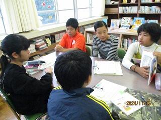 本の紹介は、「新嘗祭」や11月24日の「和食の日」にちなんで、「日本の行事」や「日本のユネスコ無形文化遺産」などの本を紹介してくださいました。 早速、5年生は国語で「和の文化について発信しよう」を勉強し、ポスター制作をするそうなので、今日紹介されていた本を借りていました。