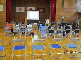 次に11月13日(水)は、日南市小中学校音楽大会(芸術の秋)、弁当の日(食欲の秋)があり、音楽の授業や昼休みに合唱や合奏を頑張っている事をほめていただき、弁当作りは自分のできるコースを選んで作りましょうというお話をされました。