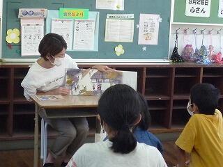 5月11日(水)大窪地区にお住まいの廣中 里子さんが読み聞かせをしてくださいました。児童はみんな、絵本の世界に入り込み、心地よい時間を過ごしました。