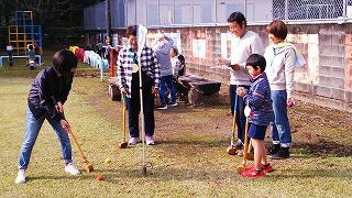 まず、9班に分かれてグランドゴルフ大会を行いました。おじいちゃん、おばあちゃんが子どもたちと一緒に楽しそうにプレイしている姿が印象的でした。ホールインワンも飛び出し、大変盛り上がりました。