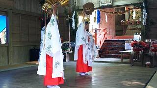 初めに、本殿で神事が行われました。次に、女子の3人が浦安の舞を奉納しました。最後に、総勢12名の男衆の中に入った男子3人が獅子舞を奉納しました。その中には、髙橋さん、坂元さん、杉田さんの3人のお父さん方も含まれていました。親子で舞うその姿を見ていると、脈々と受け継がれている伝統を目の前にして感動しました。