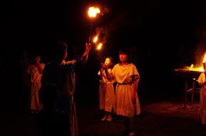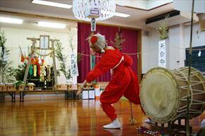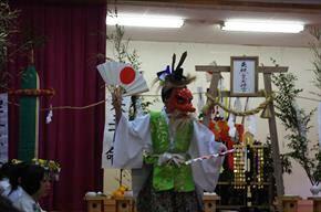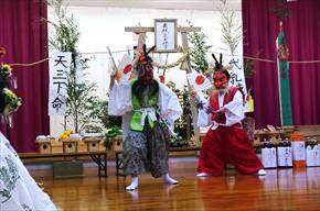3月1日(日)、大窪公民館で「大窪神楽」が奉納されました。この日はあいにくの雨模様でしたが、たくさんの人が集まりました。午前中は小学生が中心に舞う「子ども神楽」で盛り上がりました。女の子たちも「浦安の舞」を披露しました。地域の年配者から聞いた話では、「大窪神楽」は自分が子どもの頃にはすでにあって、「子ども神楽」についても20年以上の歴史があるとのことでした。古事記・日本書紀による神話を元に、国生みや天の岩戸の物語を県北の神楽とは違う雰囲気で表現していました。素晴らしい神楽でした。事前に子どもたちは放課後集まって練習をしていました。同じ目的に向かって取り組んでいく中で、仲間や地域の結束が強くなっていくのでしょう。とても意義のある地域の行事だと感じました。