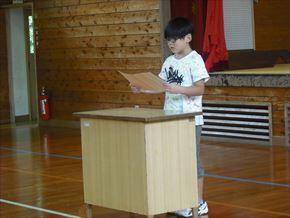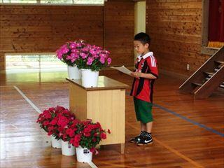 2学期の始業式で湯地隼斗君・湯地愛さん・高橋秀斗君の3人の皆さんが、2学期頑張ることをしっかりと発表してくれました。2学期は運動会やおおくぼフェスタを始めとして、多くの行事が子どもたちを待っています。13名全員が、それぞれの目標の達成に向かって、頑張ってほしいと願っています。