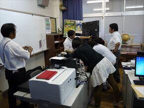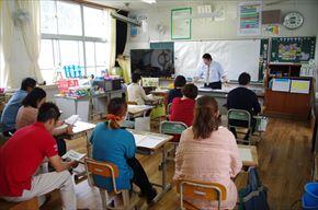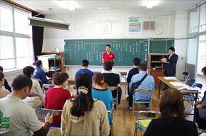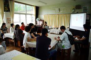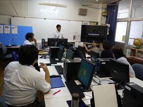 本年度本校は、中部教育事務所の「校内研修パートナーシップ推進事業」の指定を受けました。本校の担当として、指導主事の国生尚先生を校内研修に派遣していただけることになりました。夏季休業中の校内研修において2回、国生先生にご指導いただきました。1回目は、「これからの教育におけるICT教育の背景・展望」について、そして2回目は、「ICT機器の操作やコンテンツの紹介」をご指導いただきました。本校の本年度の主題研の目標は「教職員によるICT活用の有効性の確認とスキルアップ」です。少人数の強みを生かした教育の一つの方向性として、このICTを活用した教育が有効であるという仮説の元に研修を進めています。研修を進めて行くにあたって、国生指導主事からのより専門性の高い、新しい情報や指導方法をご指導いただくことは大変有効だと感謝しています。これからの研修が楽しみです。
