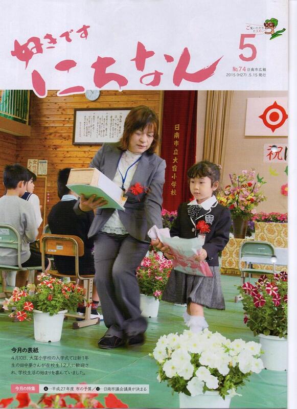 日南市広報誌「にちなん」5月号の表紙は、今年も大窪小学校の入学式のスナップでした!