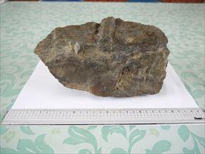 「校長先生、化石をもってきました。」3年生の湯地隼斗君が大きな石の塊を抱えて校長室の前に立っていました。見せてもらうと、確かに何かの化石のようです。動物の背骨のような模様がくっきり浮き上がっています。話を聞くと、前日お爺ちゃんがみかん畑で作業中に発見したということでした。残念ながら私ではどのような物なのか判断できないため、地学を専門にしている知人に連絡を取り、写真を見てもらいました。「実物を見ていないのではっきりとしたことは言えない」としながらも、恐らく「貝などの生物が通った後が化石となった物」ではないかということでした。その理由は、写真で見る限り化石そのものに骨らしい痕跡が見えにくいからということでした。しかし確証はないということでした。とにかく、ながい地球規模の歴史の積み重ねを実感できる素晴らしい資料です。身近な発見に強い興味をもって見せに来てくれた隼斗君の探究心は素晴らしいですね。