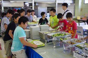 第3部は、体育館と中庭を会場として懇親会を行いました。バレーボールの心地よい疲れと興奮で大変盛り上がりました。