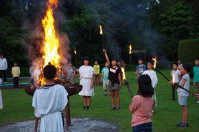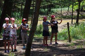 26日(火)~28日(木)の3日間、宮崎市の青島青少年自然の家で、大堂津小、細田小、大窪小の3校合同宿泊学習が行われ、5年生の4人が元気に参加しました。前週は雨の日が多かったため天候を心配していましたが、3日間ともとってもいい天気で、予定していた活動をすべて実施することができました。1日目は、大堂津駅前で出発式があり、代表で愛さんが、原稿も見ずに堂々とあいさつができました。電車で自然の家に向かいました。入所式では、陽花里さんが団体の代表のあいさつをしました。到着後すぐの昼食は、バイキング形式でいつもと勝手が違うせいか少し緊張しながらの食事となりました。午後は、追跡ハイキングを楽しみました。2時間くらいかけて松林の中を班ごとにハイキングを楽しみました。夜はキャンプファイヤーでした。陽花里さんが営火係、愛さんが誓いの言葉、里希さんと偲人君が準備係りと4人とも役割をしっかり果たしていました。幻想的で楽しい時間を過ごしました。夜は興奮してなかなか眠れなかった人もいたようです。詳しい報告は、学校だより『おおくぼ』でいたします。