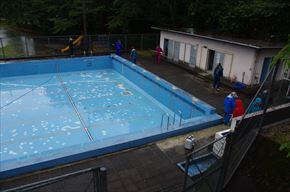 今日は昨日とは打って変わって大雨の1日でした。計画していた「プール清掃」は、「この状況では難しいかな~?」と延期を考えていたのですが、ボランティアをお願いしていた「消防団」や「保護者」の皆様が、「やってしまおう!!」とおっしゃいますので強行致しました!雨の中、男性に混じって女性の方も一生懸命取り組んでいただきました。プールの中は、降灰の影響もあるのか黒く濁った泥がたくさん溜まっていたようです。皆様方のご協力に心から感謝いたします。ありがとうございました。