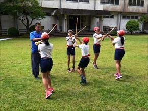 今年も剣棒踊りの練習が始まりました。剣棒踊りは大窪小学校が取り組んでいる地域の伝統芸能です。明治20年にお隣の串間市の大平から寺村地区に伝わったという剣棒踊りですが、地域の伝統芸能として定着しています。指導に今年も安藤保存会会長をはじめ金丸さん、髙橋さん、杉田さん、そして長友地域支援ボランティアさんたちが来ていただいています。練習の成果は、運動会・飫肥城下祭り・日南市文化祭で発表する予定です。