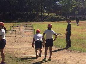 今日の5・6年生の体育は、細田中学校の武田孝子先生による陸上競技の授業でした。ハードルの基礎を指導していただきました。歩くとか走るといった動作は、日常的に誰もがやっていることですが、競技として行おうとするとなかなか奥が深く難しいものです。武田先生は小学生にも分かりやすく指導されていました。陸上競技は、あらゆるスポーツの基本です。来週は、リレーの指導をしていただく予定です。
