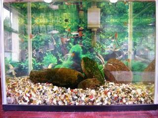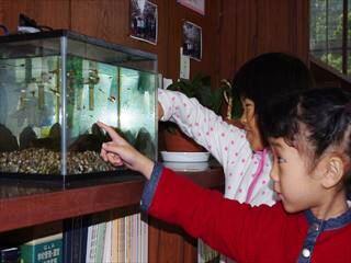 メダカの水槽にグッピーが仲間入りしました。私がお世話になっている歯科医院(中央歯科:都城市)からいただきました。先日、治療に行ったとき、待合室にある水槽のグッピーにたくさんの稚魚が誕生しているのに気付きました。ジロジロ見ていたところ、看護師さんから「よければ、お譲りしますよ。」と嬉しい提案をいただきました。一週間後の治療の時、小さな水槽を持参して来院し、わけて貰いました。校長室の水槽にはメダカが3匹しかおらず寂しかったのですが、一気に賑やかになりました。早速子どもたちに紹介したところ、目をキラキラさせて観ていました。優しい中央歯科の皆様、ありがとうございました!!