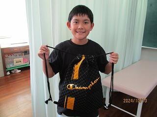 家庭科で5年生はナップサック作りをしていましたが、完成したようです。とても嬉しそうに見せてくれました。
