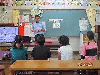 5校時、交通安全教室がありました。日南交通安全協会の方と日南警察署の方が来校されました。