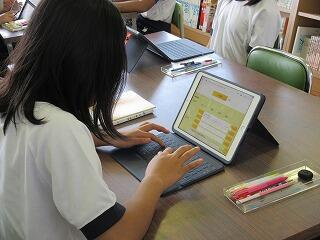 1校時の授業は、国語で5年生は「インターネットは冒険だ」、6年生は「イースター島にはなぜ森林がないのか」でした。昨年と比べ、国語の内容も難しくなっていますが、子ども達は自分の意見をタブレットでまとめたり、発表したりするなど頑張っていました。