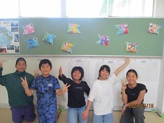 6校時のクラブ活動は、鯉のぼり製作をしました。ビニール袋に細かくした花紙を入れ、目を付けました。同じ材料でも、一人ひとり好みの色、目の描き方や付け方が違っており、個性あふれる素敵な作品となりました。