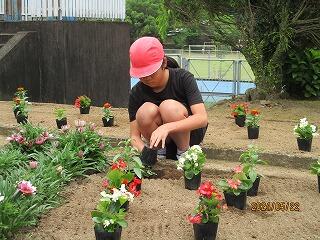 昨日から環境整備員さんが芝刈りや植木の剪定などを行ってくださいました。今日は、子ども達とJA青年部による花の苗植えもあり、学校全体がとてもきれいになりました。明日からまた、子ども達も職員も気持ちよく学校生活が送れます。暑い中、ありがとうございました。