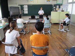 5年生は①音楽「茶色の小びん」を約7種類の楽器を使っての合奏 ②算数「小数のわり算」 ③体育「ソフトバレー」、6年生は①算数「分数×分数」 ②体育「ソフトバレー」 ③理科「植物のつくりとはらたき」でした。