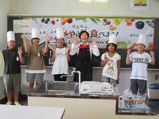 6年生は「野菜いため」「スクランブルエッグ」です。3人で分担を決め、分からないところは教科書で確認したり、先生にアドバイスをもらったりしながら作っていました。子ども達は、家でも料理の手伝いをするので、楽しそうに作っていました。こちらも美味しくできたようです。