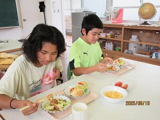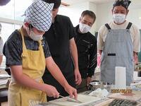 調理では、さばくところからはじめました。2人とも最初は緊張をしていましたが、少しずつ慣れ、細かい骨抜きまで上手にできていました。
