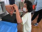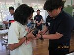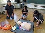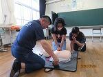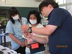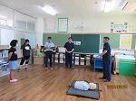 今年は、先生と一緒に心肺蘇生法、AEDの使い方、119番映像通報について学習しました。結々さんは、去年学んだ心肺蘇生法や理科の授業を生かすことができ、講師の方にも積極的に質問をしていました。