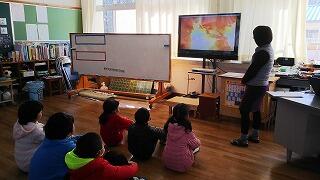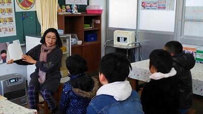 2月14日(水)、朝の活動は読み聞かせでした。毎月1回来られる読み聞かせボランティアの廣中さんが読んでくださいました。