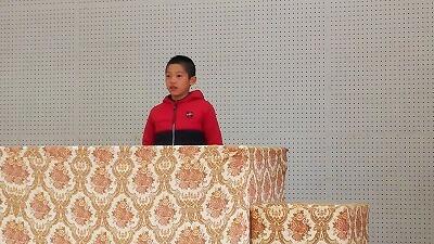 始業式では、4年生の優さんが「3学期にがんばりたいこと」を発表しました。苦手なことに進んでチャレンジして,克服していきたいと力強く述べました。