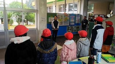 1月29日(月)、新しい図書司書の先生が見えました。藤島春菜先生です。一ヶ月に一度来校して、子どもたちに読み聞かせをしたり、図書室の本の整理をしていただきます。よろしくお願いします。子どもたちが校外学習に出かける前に紹介しました。