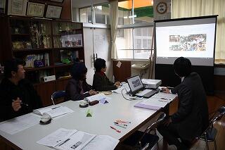 まずは、第2回学校関係者評価委員会に学校評議員の川越さん、安田さん、湯地会長が来られました。これまでの学校の取組を説明して、評議員の方々にご意見を伺いました。教職員や保護者、児童の自己評価と併せて今後、評価いただいた結果をホームページで公表する予定です。