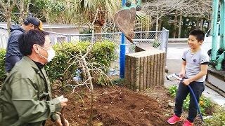学校の中庭にある「みかんの木」に、今年も「学校支援地域コーディネーターの長友肇さん」が消毒をしてくださいました。年末には、中庭でおいしいみかんを収穫しました。たいへんおいしかったです。新しい年になっても、長友肇さんが定期的に消毒をしてくださるので、みかんの木が元気です。いつもありがとうございます。