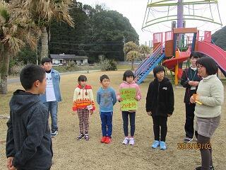 3月1日(金)、お別れ遠足を実施しました。学校から目的地の「ハマボウ公園」までのおよそ9kmの道のりを無事に歩くことができました。途中、ヤギとのふれあい・細田児童館での交流で休憩を挟みながらの行程でした。「ハマボウ公園」では5名全員で仲良く遊び、お別れ集会も開催しました。天気がよく、楽しく過ごせた遠足でした。