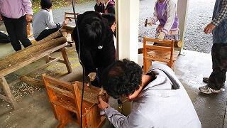 大平小学校との棒踊り交流会