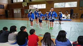 2月9日(金)、串間市立大平小学校へ行ってきました。大平小学校も本校同様、地域に伝わる伝統芸能である「大平棒踊り」の伝承活動を行っています。棒踊りを通しての交流会は、今年で3回目です。