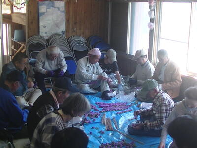 初めに、飾りに使うキク科アザミ属のアザミの花の準備です。