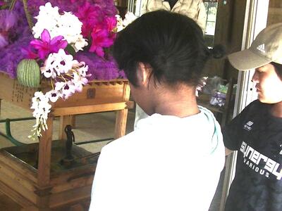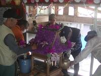 飾り付けが終わると、スイカズラで作った「甘茶」を御釈迦様の像にかけました汗・焦る