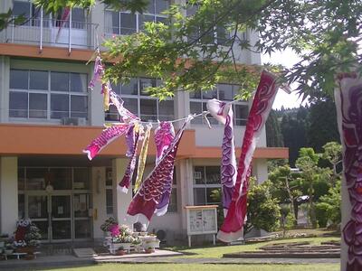 鯉は流れの速い川でも進んでいく、たくましい魚です。風に立ち向かうこいのぼりを眺めながら、大窪小の子どもたちもたくましく成長することを願っています病院