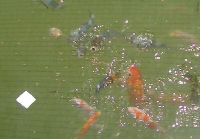 こちらはプールを泳ぐ本物の鯉のようすです。5月に入り、食欲旺盛ですにっこり