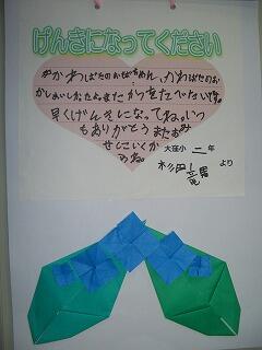 7月10日(月)、朝の活動の時間に、みんなで学校のすぐ近くにある川畑商店を訪問しました。店主の川畑さんは、以前は手作りのお豆腐も販売していたそうで、地域の方々にとても愛されているお店です。学校行事にも参加いただいたり、登下校中、声をかけてくださったりと子どもたちとも関係の深いお店です。しかし、ここ最近、奥様がご病気で店を閉めることが多くなっていらっしゃいました。そこで、子どもたちが手紙を書いて持っていくことにしました。店先で奥様の病状を詳しくお話してくださいました。ご夫婦で「学校がある限り、店を続けようね」と話をされていたそうなのですが、地域の方々に迷惑をかけるので近々店をやめると言われました。引率した職員の目にも涙が流れました。奥様が早く元気になられて帰ってこられることをみんなで祈っています。