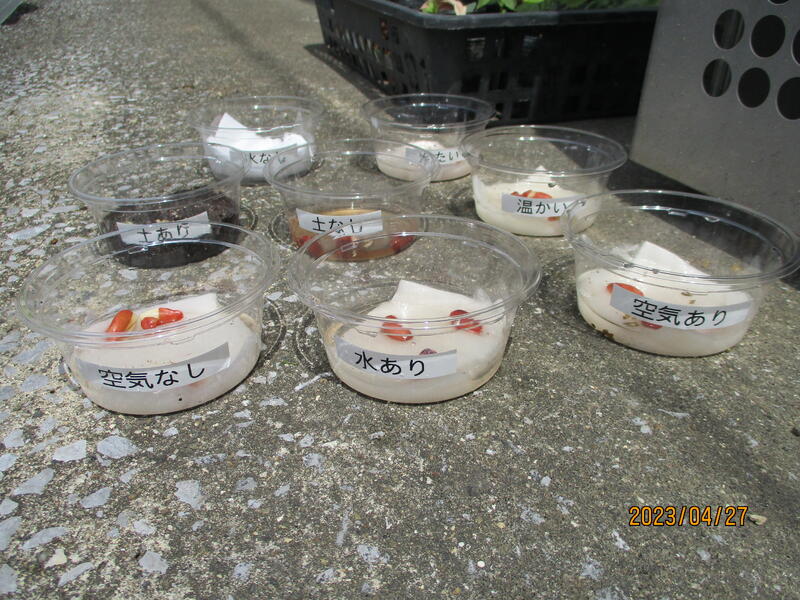 「土あり」「水あり」「温かい」など、色々な条件で育てました。