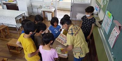 7月1日 地域ボランティアの廣中さんに朝の読み聞かせをしていただきました。子どもたちは、毎回とても楽しみにしており興味をもって聞き入っていました。読んでいただいた本の感想も進んで伝えていました。