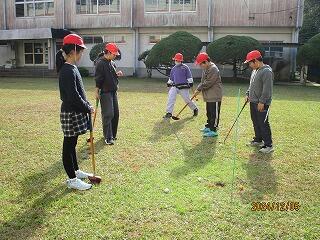 明日は、2学期の終業式。今日は、昼休みに子ども達と職員で「大窪小パークゴルフコンペ」が開催されました。校長先生がルール決めやコース作り、賞品まですべて準備してくださいましたキラキラお陰で、2学期最後の昼休みを、みんなで楽しく過ごすことができました。さすがにホールインワンは1人もいませんでした興奮・ヤッター!