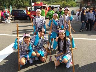 10月19日(日)に飫肥城下祭りがありました。多くの観光客が見守る中、メインイベントである市中パレートで盛り上がりました。大窪小学校の児童も上級生を中心に、保存会と方々と一緒に「剣棒踊り」を披露しました。正式な装束を着て雰囲気もバッチリでした。臆することなく堂々とした踊りに、沿道の皆様から盛大な拍手をいただいていました。