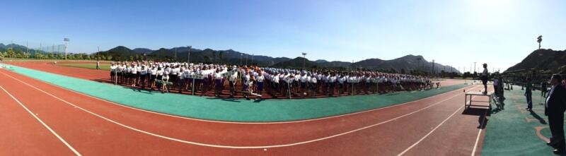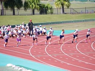 10月28日(火)に日南市総合運動公園陸上競技場で、日南市小学生陸上教室が開催されました。雲一つない青空の下、日南市内の小学5・6年生が記録を競いました。ただ、北からの風が強く、少し肌寒かったので、競技場に控えている時や風向きによっては、やりにくく感じた人もいたかもしれません。でも、みんな真剣に一生懸命取り組んでいました。日南学園高等学校陸上部の模範走も素晴らしかったですね。とても充実した1日でした。