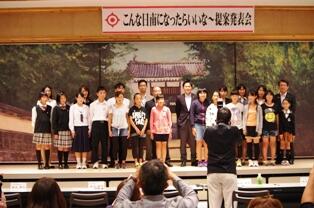 10月29日(水)に小村記念館で、「こんな日南になったらいいな~提案発表会」が開催されました。この発表会は、621人の応募の中か選ばれた10人が、各々の提案を、﨑田日南市長を始め黒木教育長など日南市政に関わっていらっしゃる方々の前で行いました。大窪小学校から出場した外山佳歩さんは、「小学生みんなで協力して日南市の絵を作成し、展示」という提案をしました。提案者の中では最年少でしたが、佳歩さんらしい小学生らしく堂々とした発表でした。日南市が魅力的な市になっていくためには、私たち一人一人が佳歩さんたちのように「こんな日南市になったらいいな~」という希望や夢を持つことが、とても大切なことだとあらためて感じました。