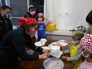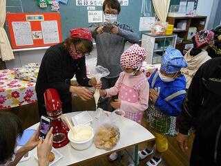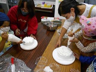 12月4日 家庭教育学級で、大窪在住の方を講師に招き、「親子ケーキ作り体験」を行いました。参加された保護者や子どもたちも楽しい雰囲気の中、親子でケーキを作ることができました。講師の方が作って来られた試食用のケーキをおいしくいただきながら、親子でふれ合うことができて有意義な家庭教育学級となりました。