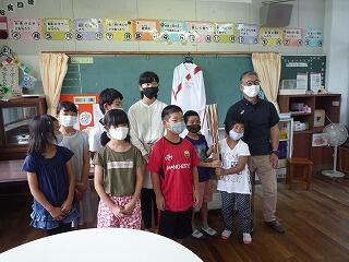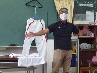 東京オリンピックの聖火ランナーで日南市を走られた中島康俊様にご講話をしていただきました。「みんなが喜んでくれる笑顔を見たい」、「大窪地区に愛着をもって欲しい」等のお話を伺い、夢や目標をもってがんばっていることのすばらしさを学びました。